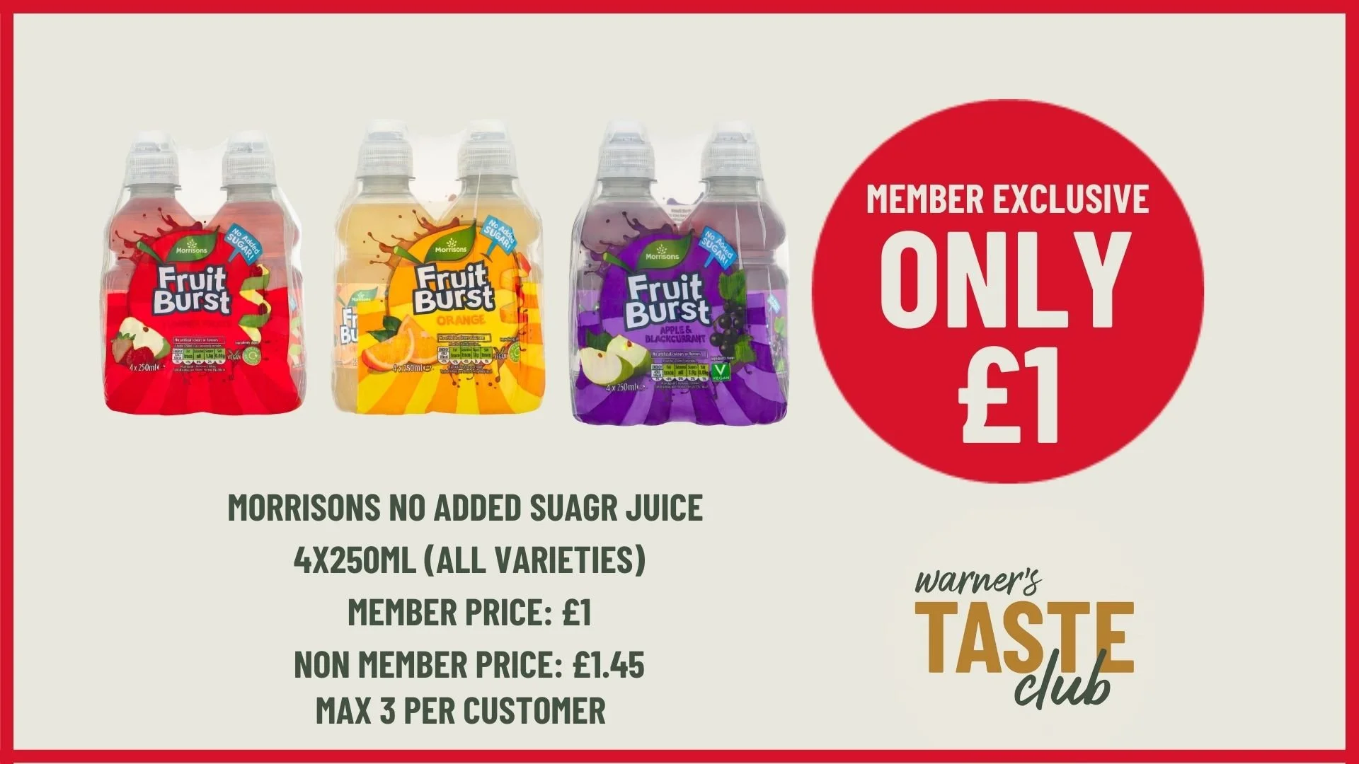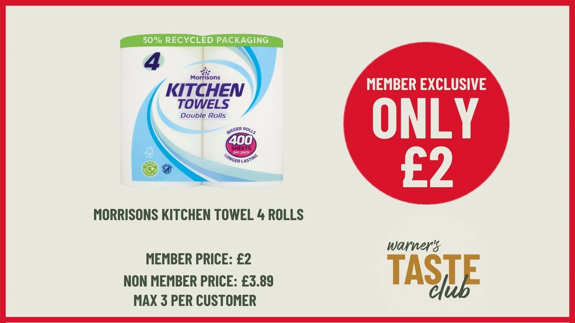 MEMBER EXCLUSIVES Offers available 05/02/2026 – 05/03/2026 at Warner’s Upton-upon-Severn when you scan your Taste Club card or app at the till. Terms and Conditions apply. Maximum 3 redemptions per deal.